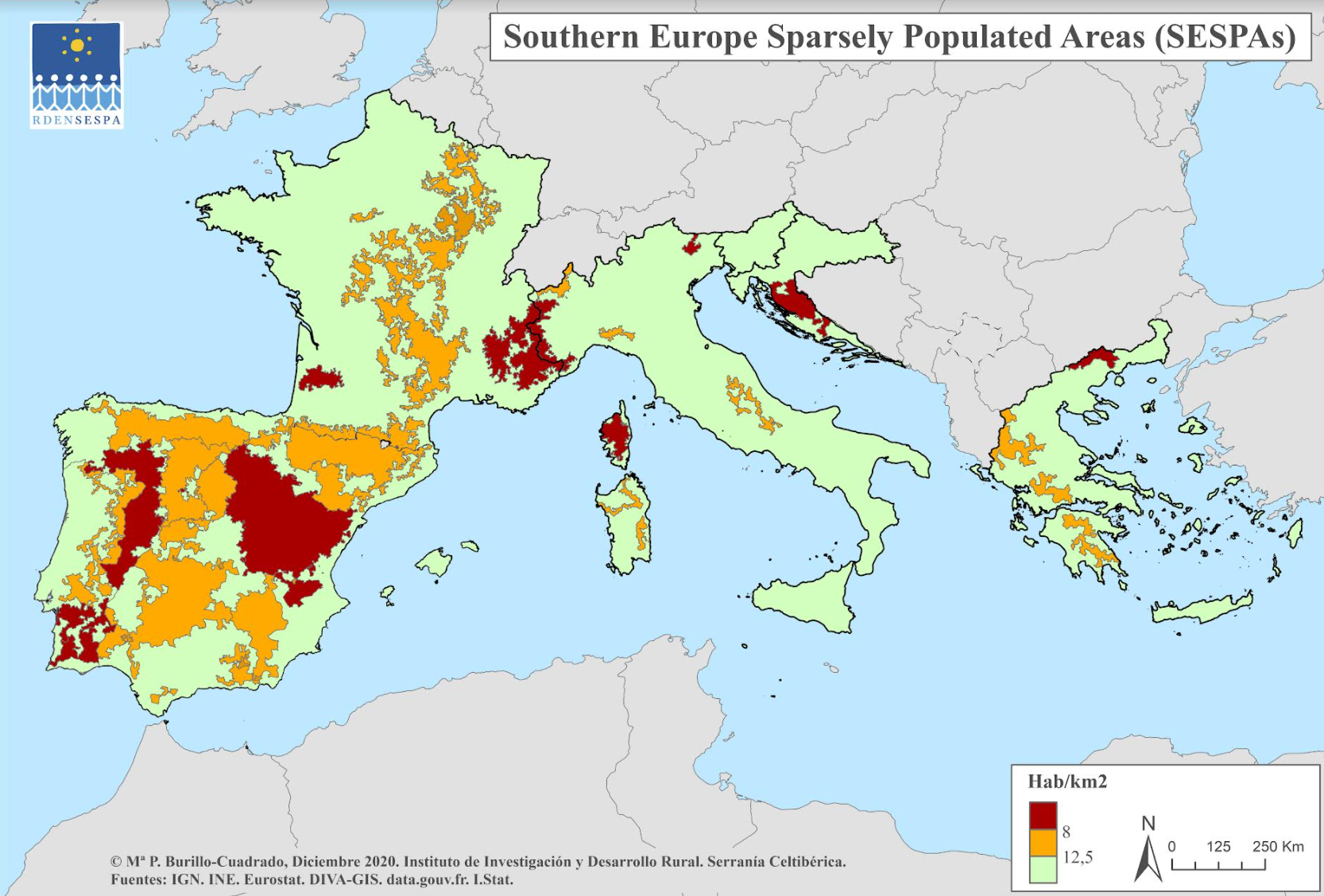 RDENSESPA is constituted with the fundamental objective of developing the article 174 of the Treaty on the Functioning of the European Union (TFEU), aimed at reducing disparities between the levels of development of the various regions and the backwardness of the least favoured regions. Specifically, it will focus on rural areas with severe natural or demographic disadvantages, with a low population density, and island and mountain regions from southern Europe.